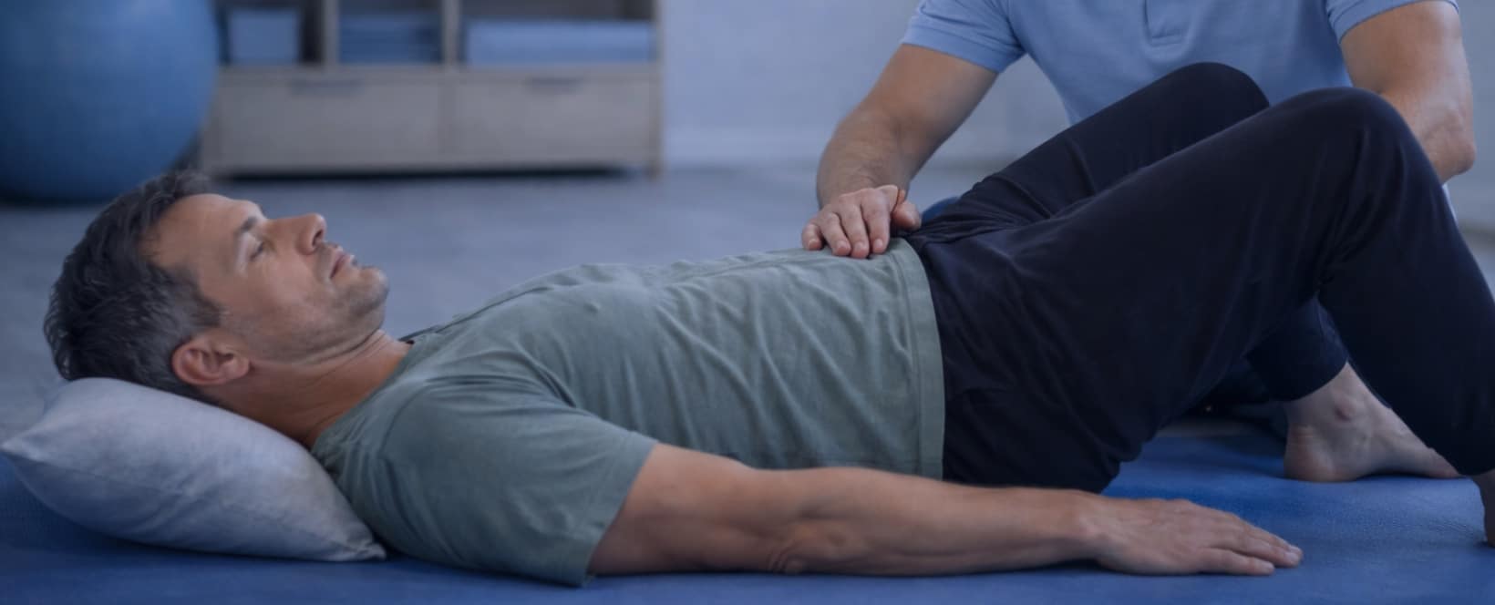 Vervolgens deden we oefeningen gericht op rompstabiliteit en ontspannen bewegen die zorgde voor een geleidelijke opbouw van dagelijkse activiteiten, zoals bukken en tillen. Dit deden we met een functionele training met aandacht voor ademhaling en bewegingsvertrouwen.